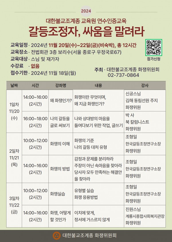 *교육장소: 전법회관 3층 보리수(서울 종로구 우정국로67)